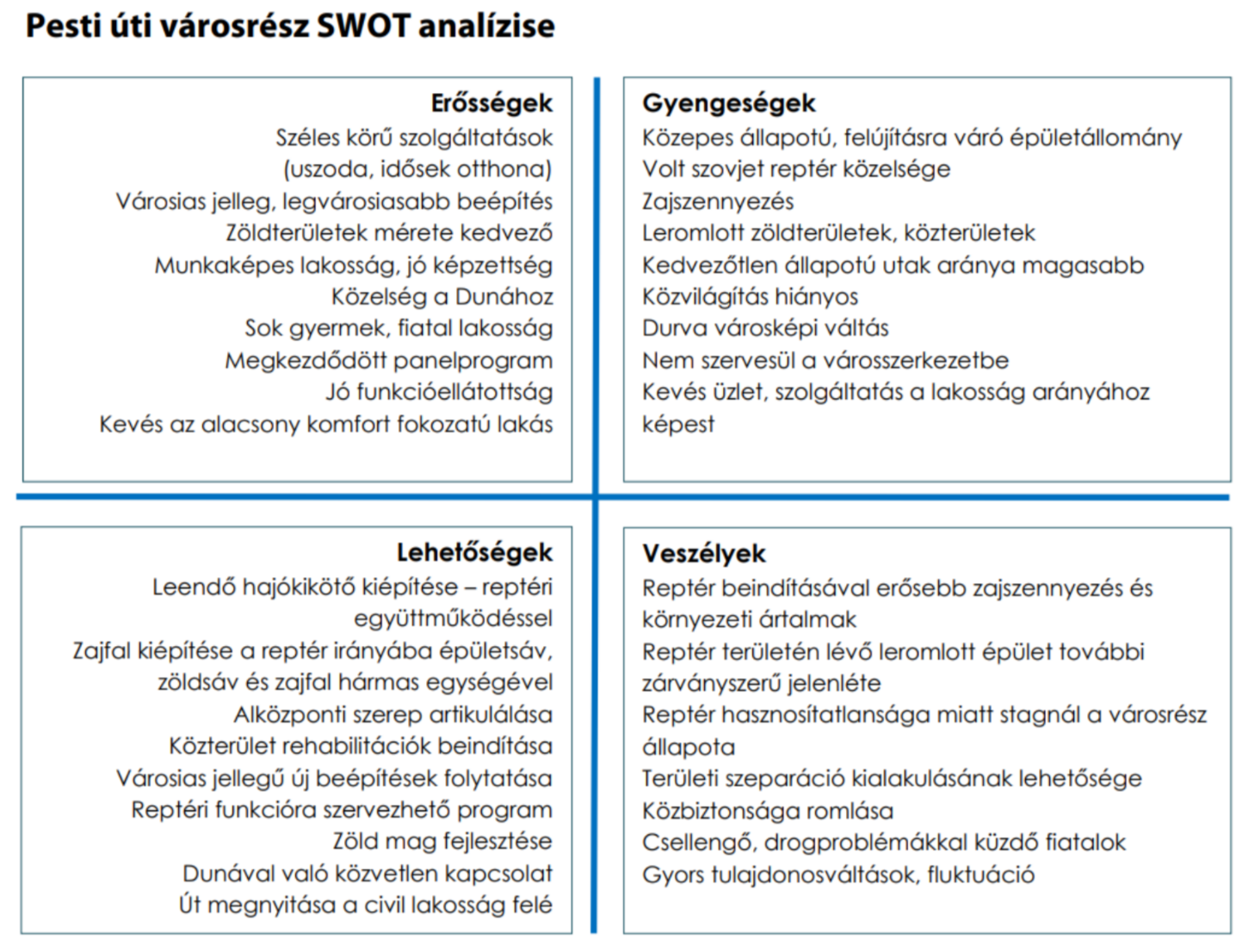 Tököl rendelkezik Integrált Városfejlesztési Stratégiával (2010), amelyben városrészenként elemzi a város helyzetét. A Pesti úti városrészre vonatkozó SWOT-analízis az alábbiakban kerül bemutatásra.