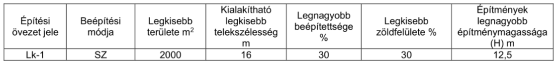 - b) Oldalkert: szabadon álló beépítés esetén H/2 méter, oldalhatáron álló beépítés esetén az országos érvényű jogszabályok előírásai szerint alakítható ki.