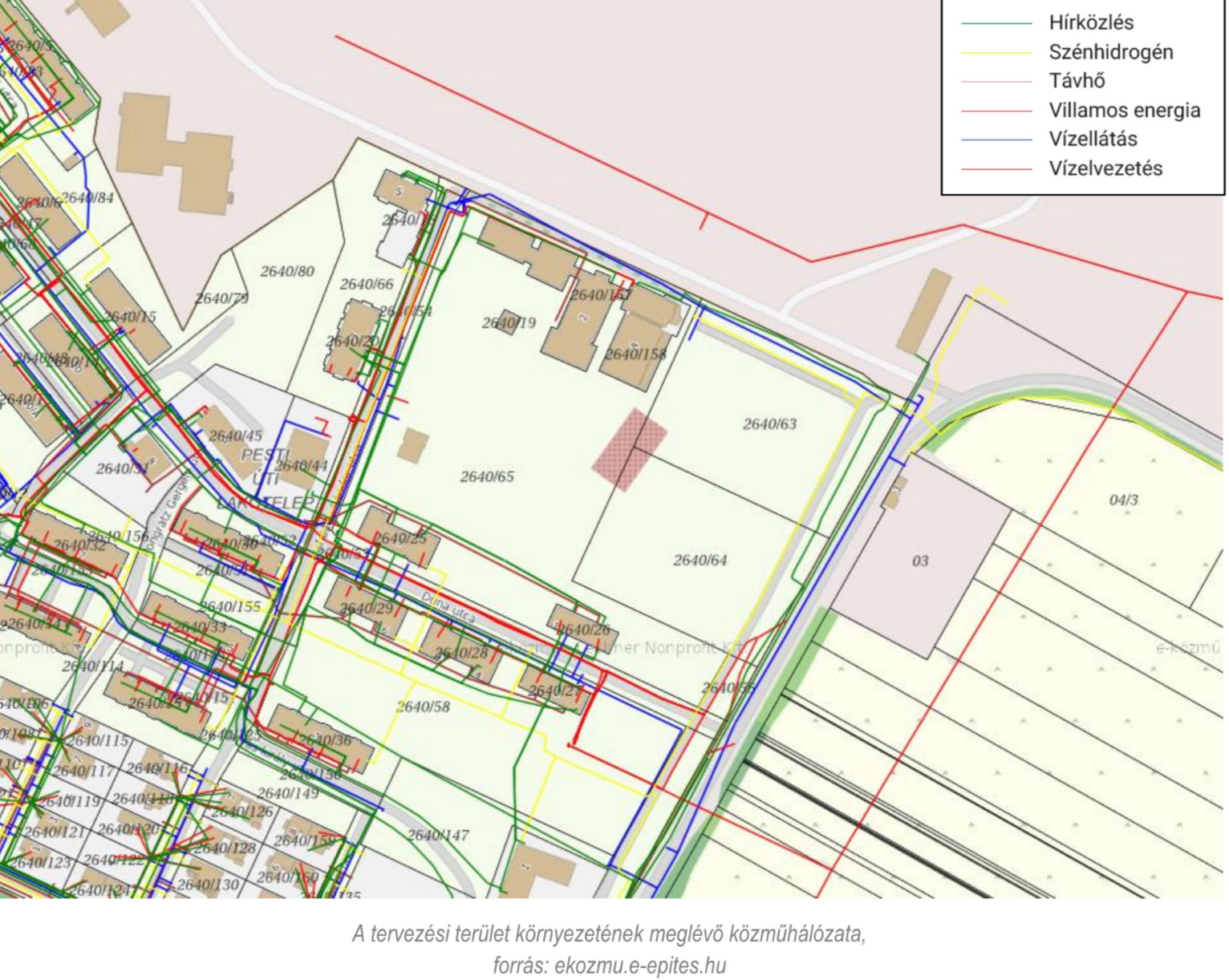 A tervezési területet teljes közműellátással lehet kialakítani, melyhez a szükséges közműhálózati elemek a közelben rendelkezésre állnak, de az azokra történő rácsatlakozás lehetősége és mikéntje csak a részletes tervezési elképzelések ismeretében, a kiviteli tervdokumentáció részeként pontosítható.