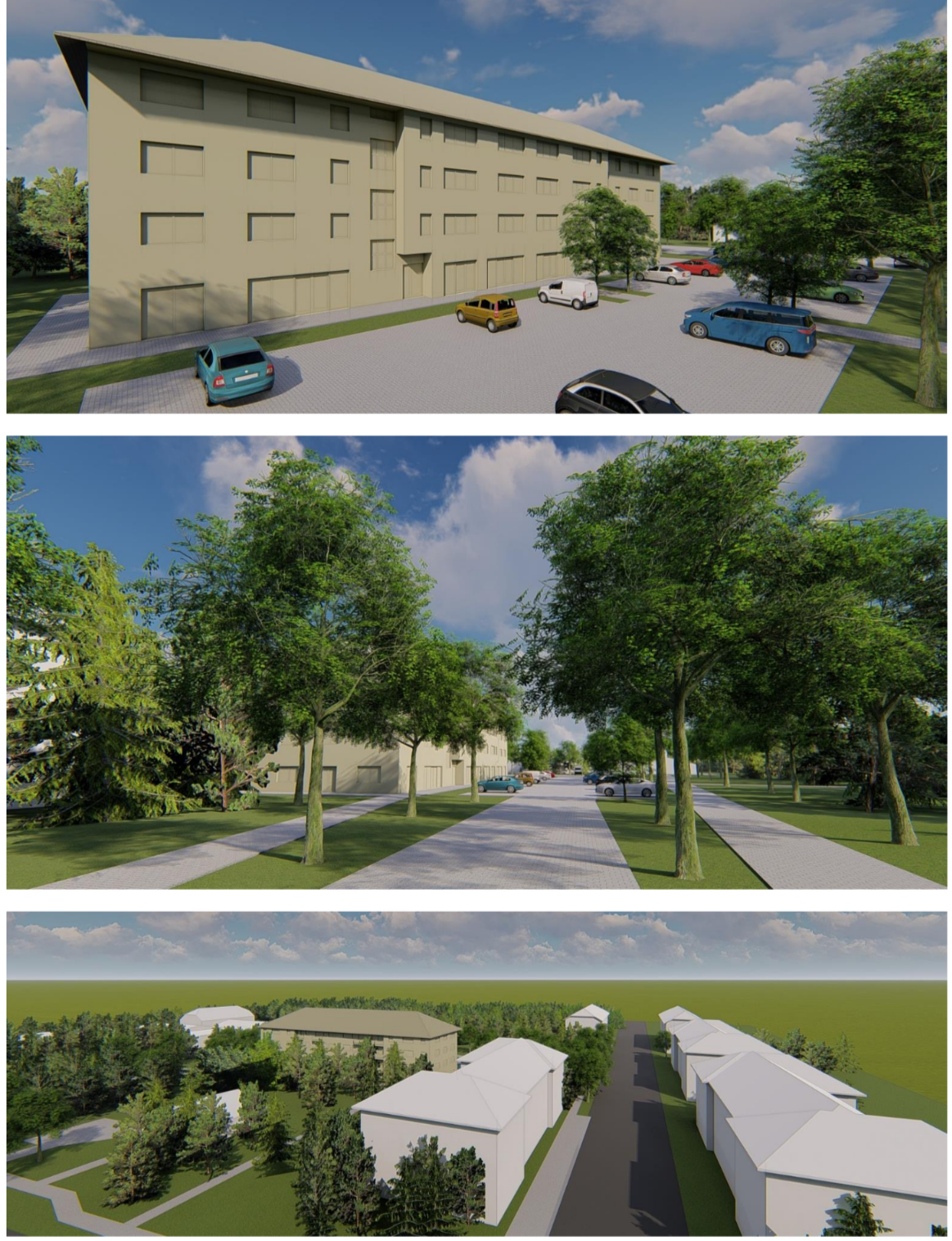 - A volt szovjet repülőtér esetleges hasznosítása esetén fellépő környezeti ártalmak kivédése a városrész megfelelő leválasztásával, hármas egységben: épületsáv, zöldsáv, és ahol szükséges esztétikailag is megoldott zajfal.