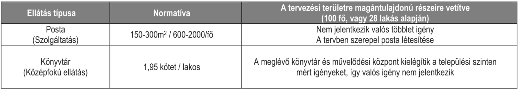 - Lakónépesség számhoz megfelelő kereskedelmi és szolgáltatási alközpont kialakítása.
